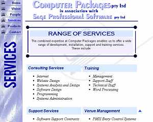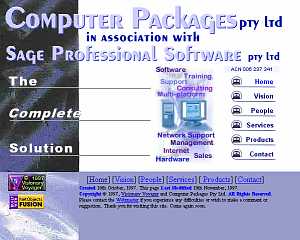 Packages homepage. Features a 300x150 pixel 30 frame gif animation < 30K.