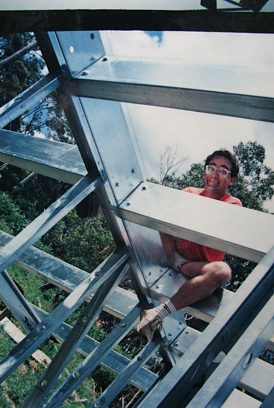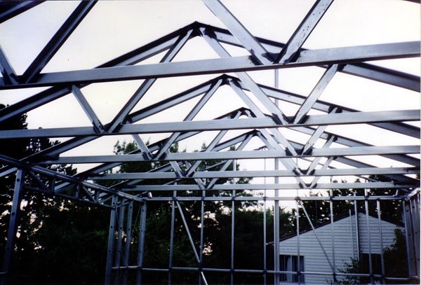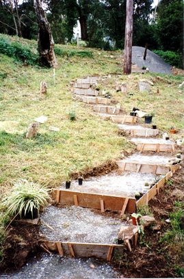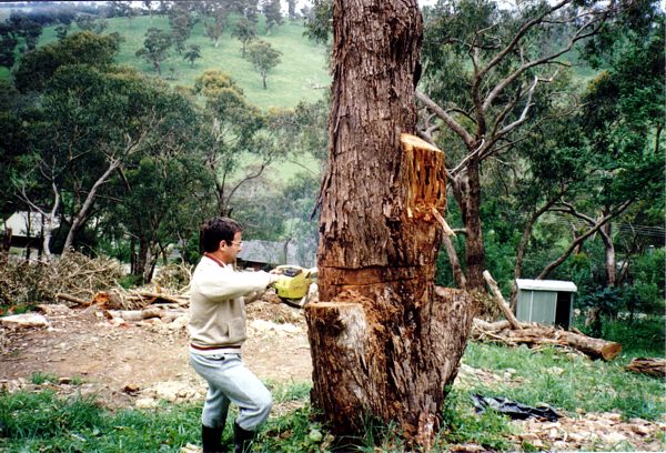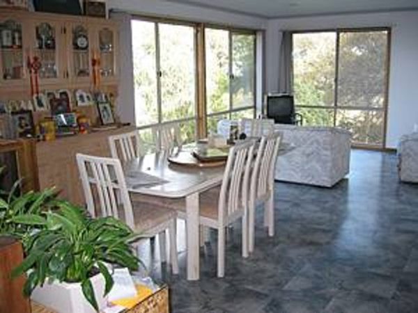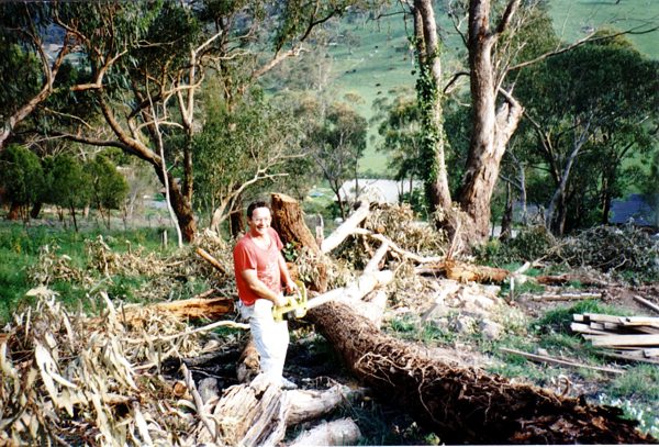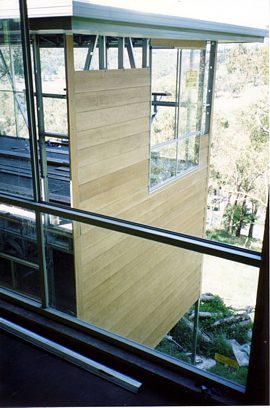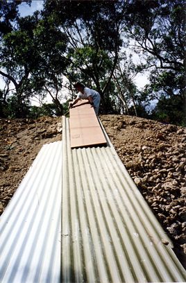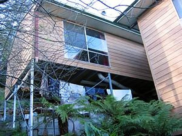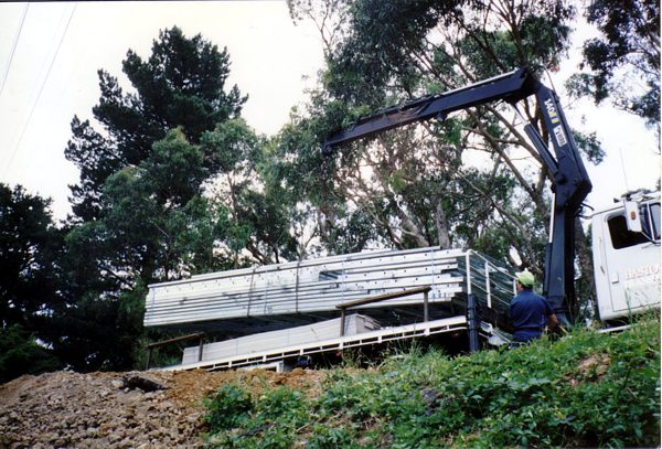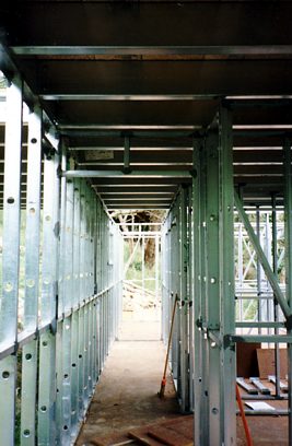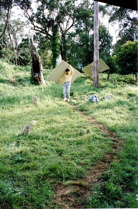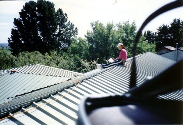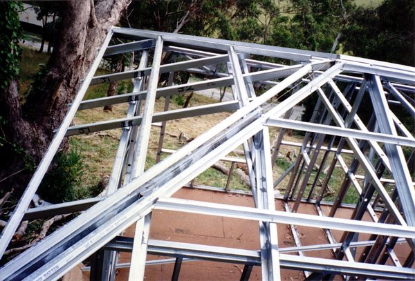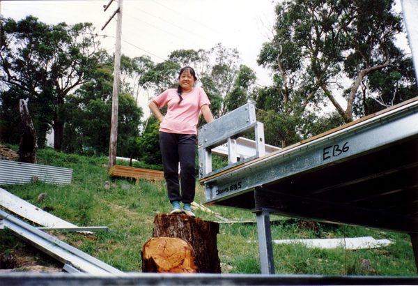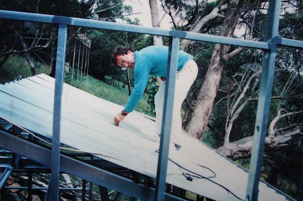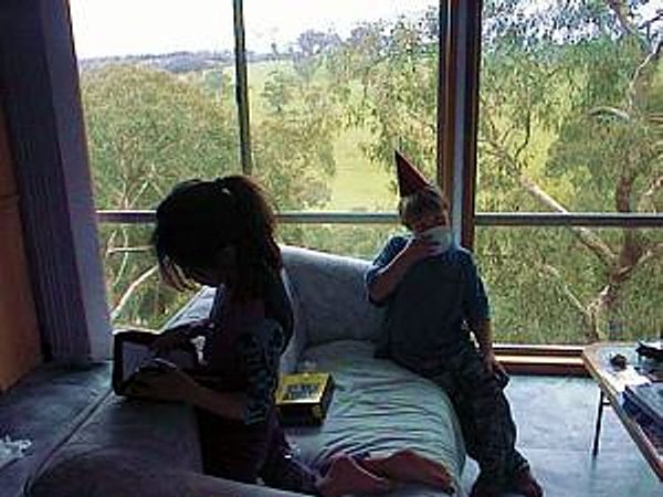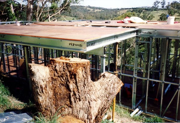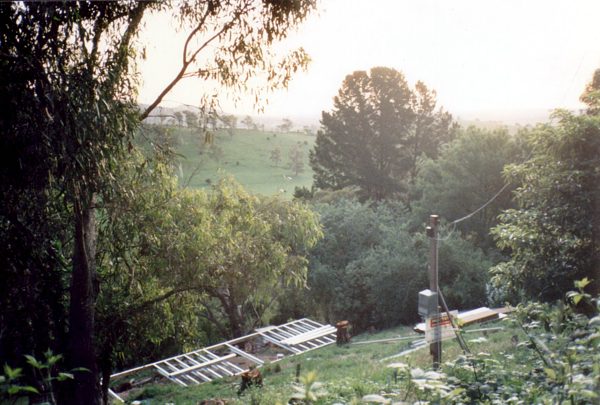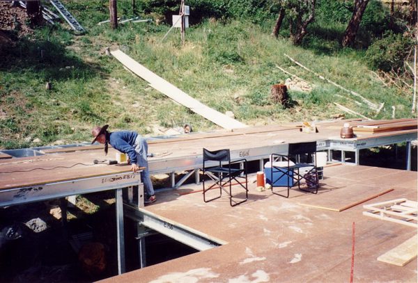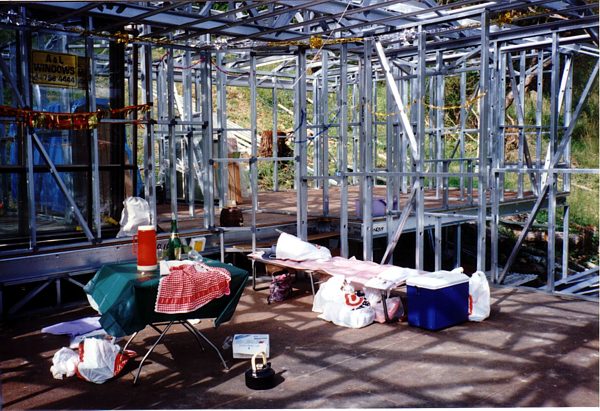 The house is built with a steel frame and an exterior of wood-grained cement sheet which helps a lot in this bushfire-prine area. We did all of the work ourselves, except for the electrical wiring and essential plumbing. We built the house on weekends and in trhe evenings while both working full time and while David did his PhD. We love our steel-framed house.