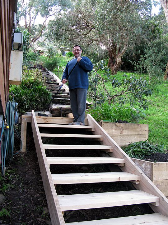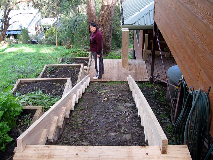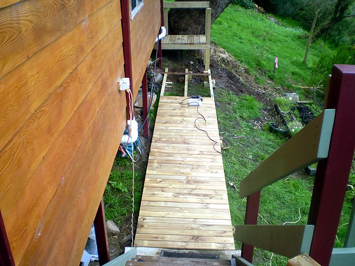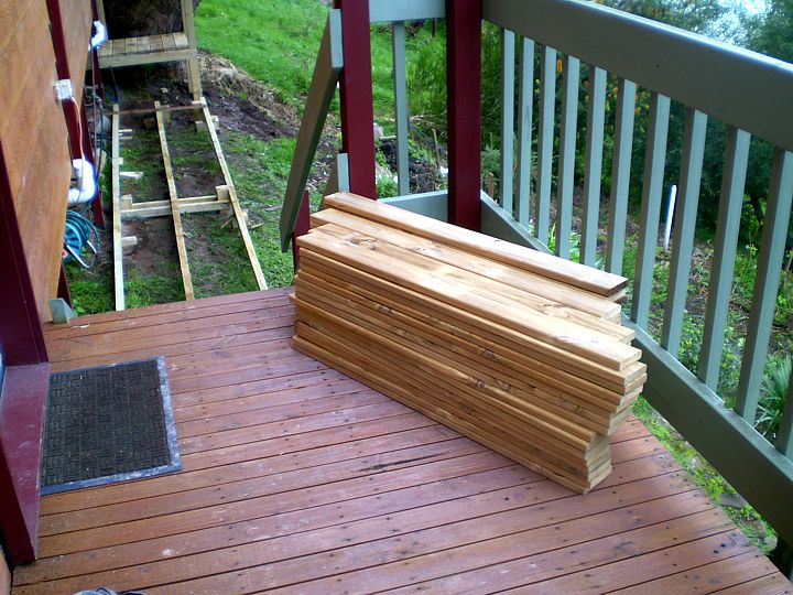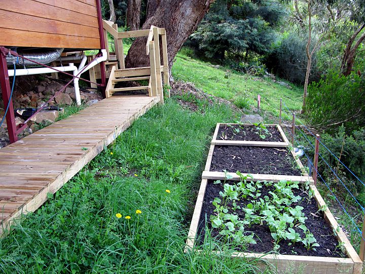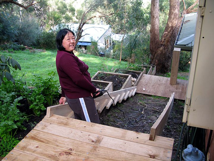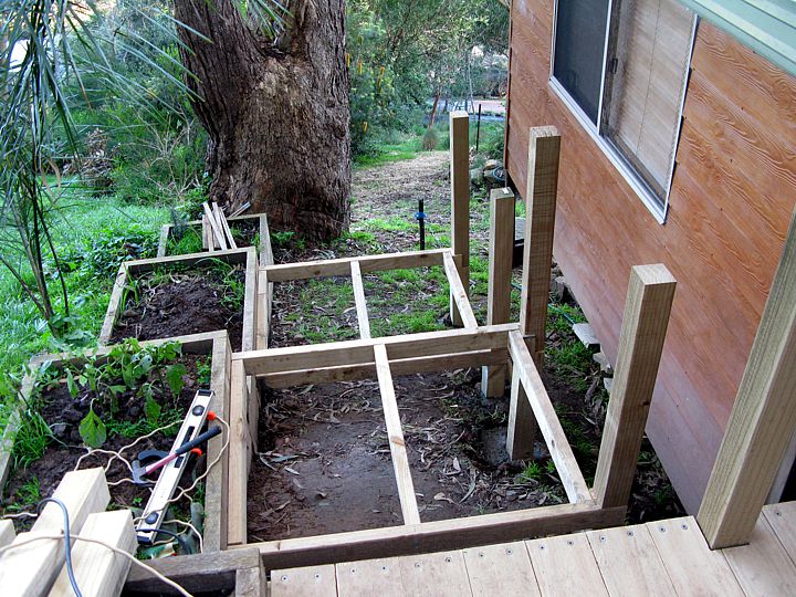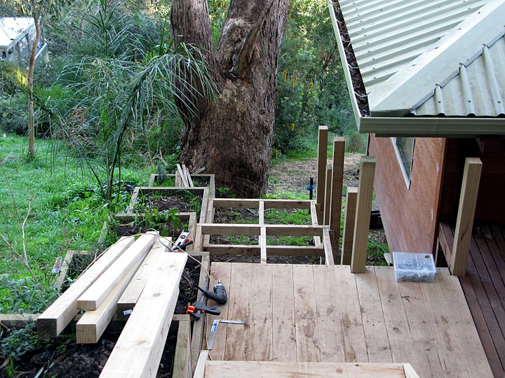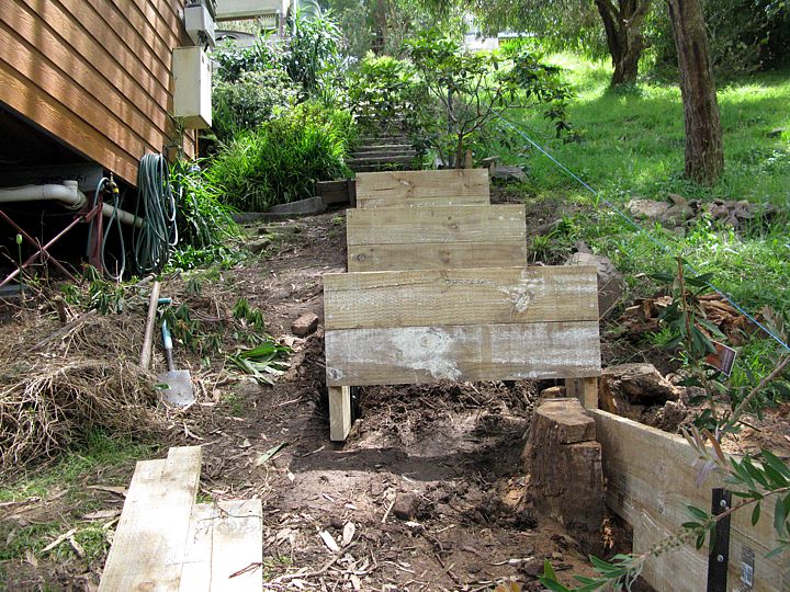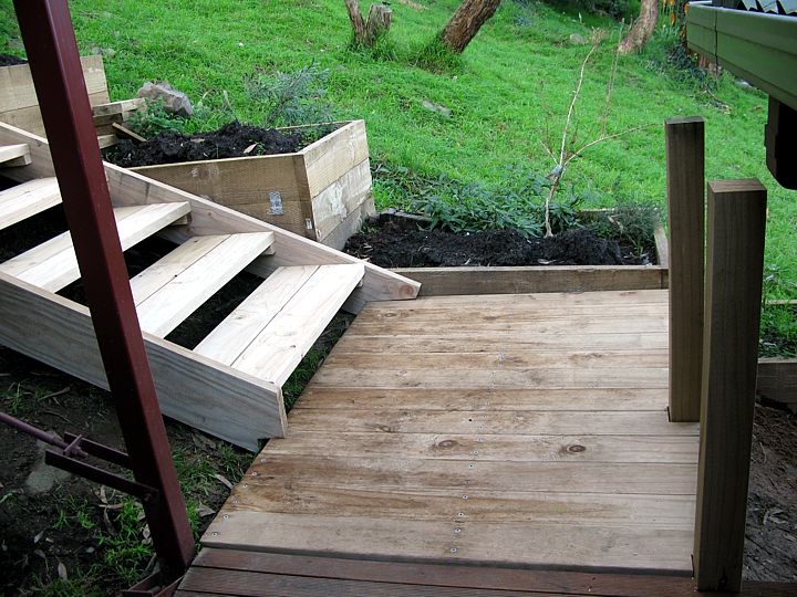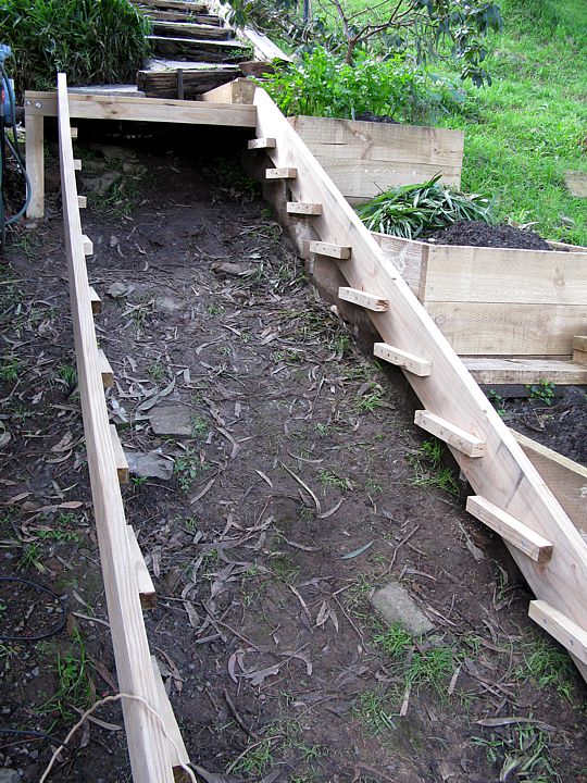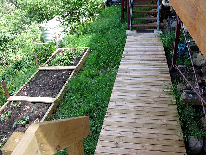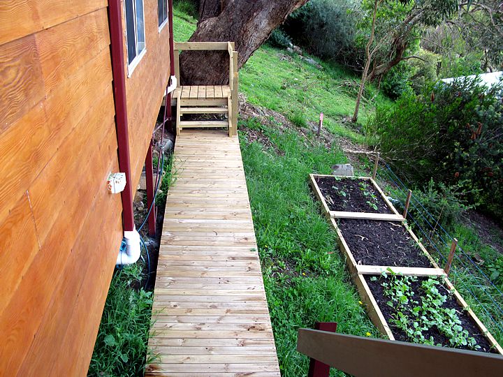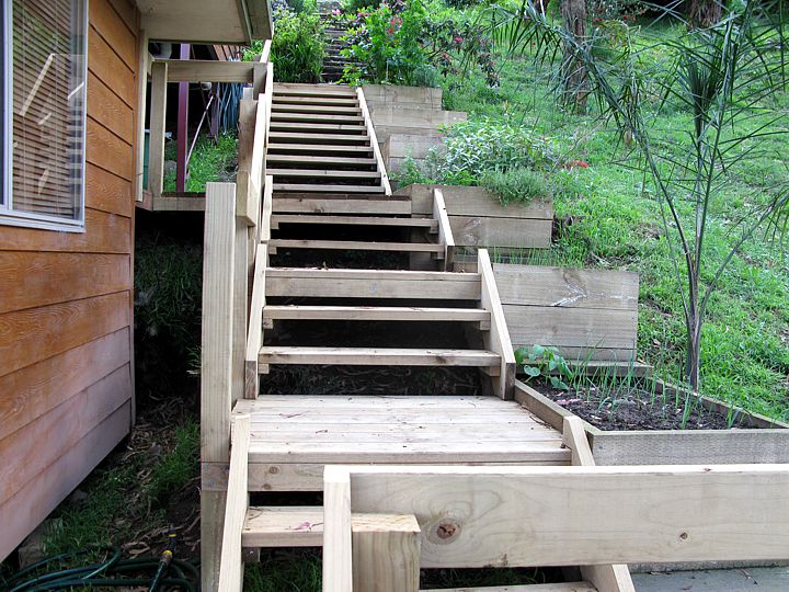 The work was done in two sections: The garden boxes along the property line were build between December 2010 to January 2011, while the stairs, decks ad ramps were built between July to August 2011.