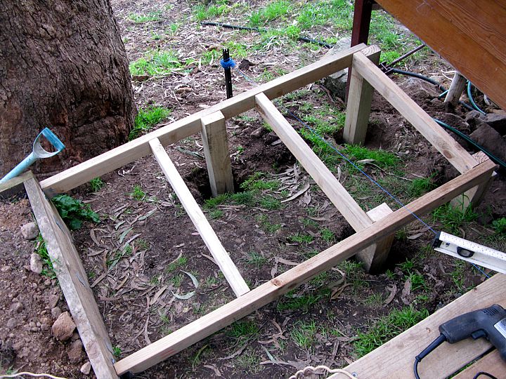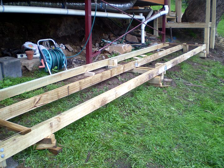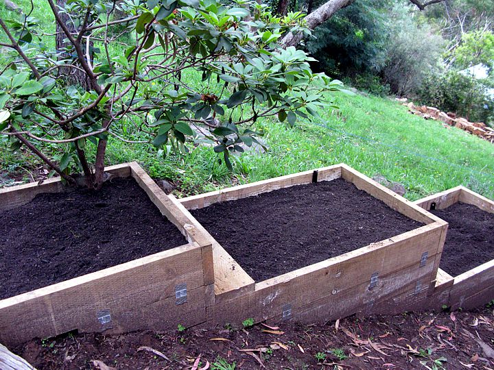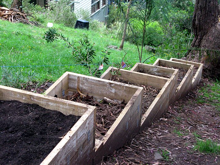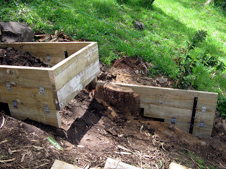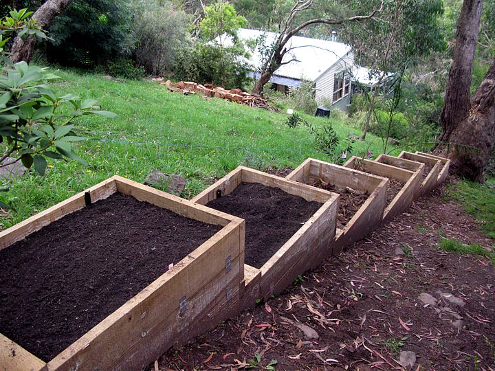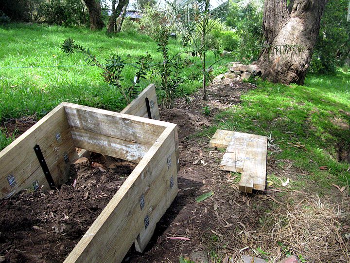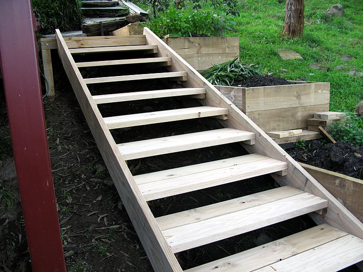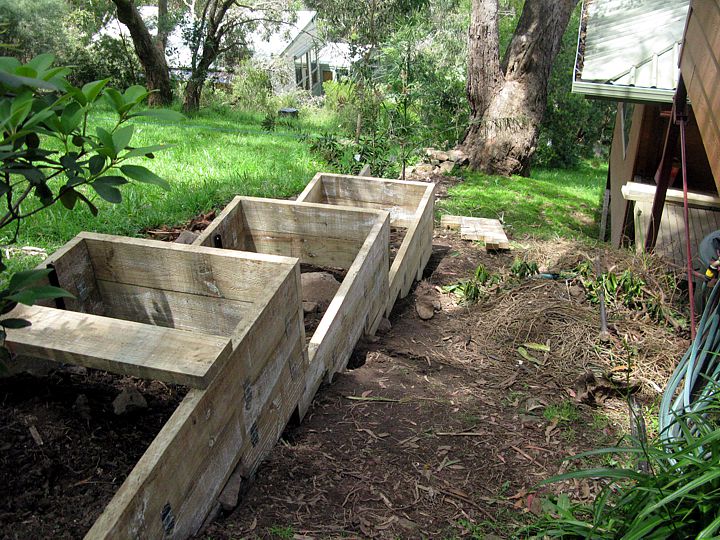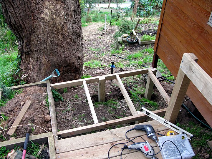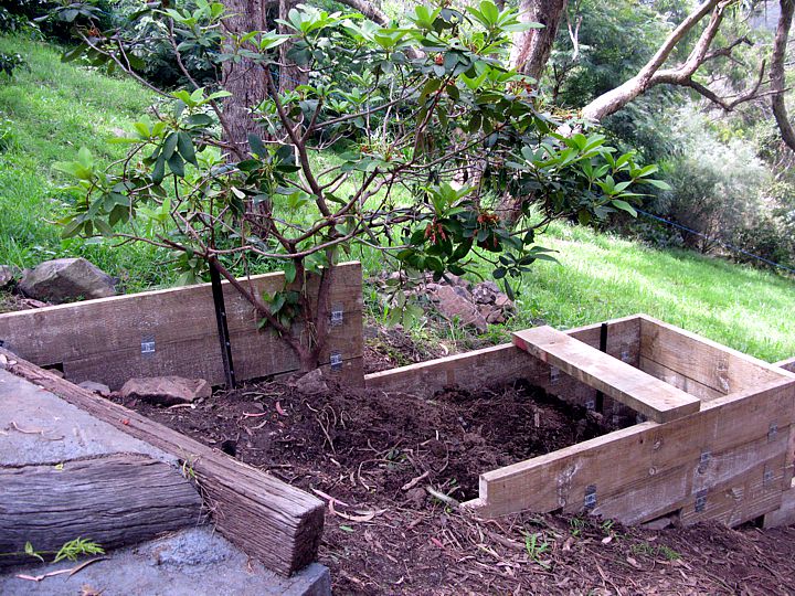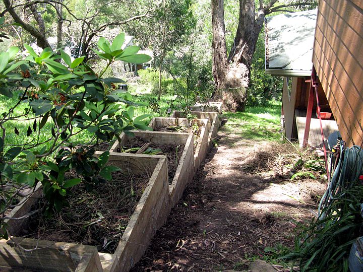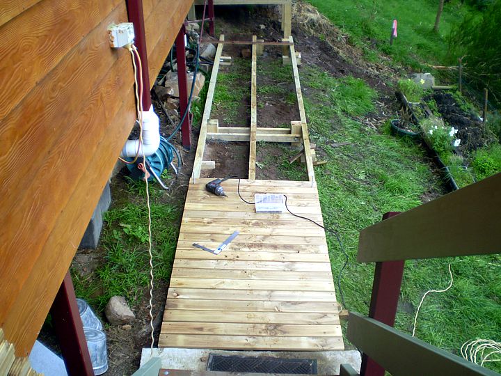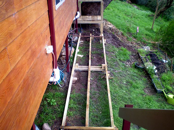 The work was done in two sections: The garden boxes along the property line were build between December 2010 to January 2011, while the stairs, decks ad ramps were built between July to August 2011.